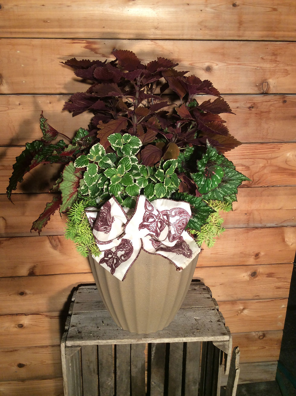 All of our Arrangements are Made for You right Here in our Shop. We use Fresh Plants grown in our Greenhouse.